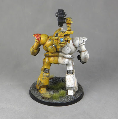 The robots that Citadel released for Rogue Trader are some of my favourite 40k miniatures. They are big (for 28mm scale), fun and interesting sculpts that really do draw on the sci-fi artwork of the era. A few years ago I picked up an upscaled resin version of the one of the RT robot designs (the Castellan) that was available from the short-lived Troll Soup Miniatures. I'm not entirely sure what the rationale was behind the enlargement, but to all intents and purposes the sculpts were carbon copies of the originals, but bigger. Much bigger! In the event, I decided the larger Castellan was too big for 28mm gaming, but I put it aside with my 54mm Inquisitor figures for a rainy day!